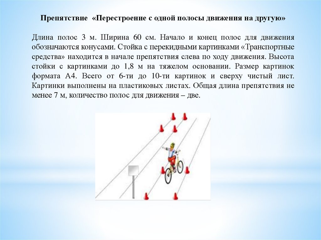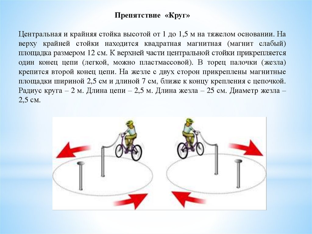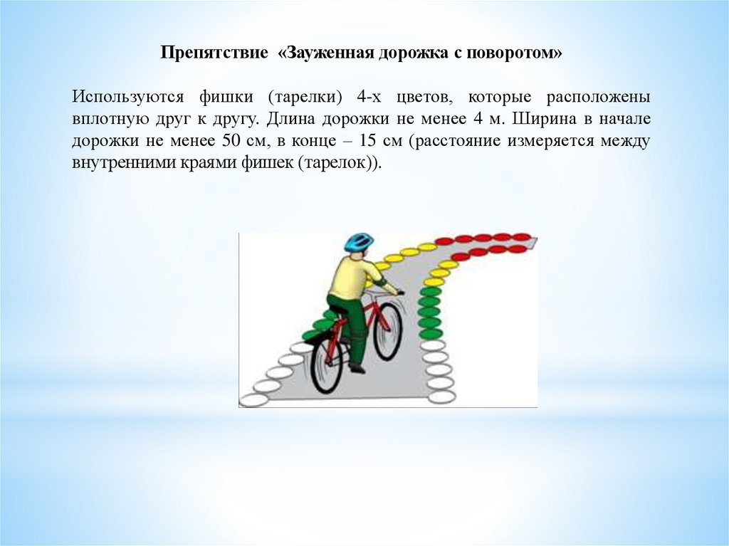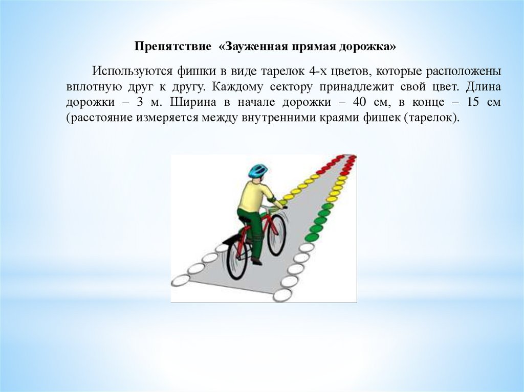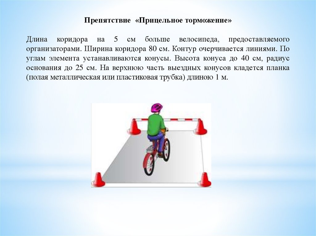 Препятствие «Прицельное торможение»Длина коридора на 5 см больше велосипеда, предоставляемого