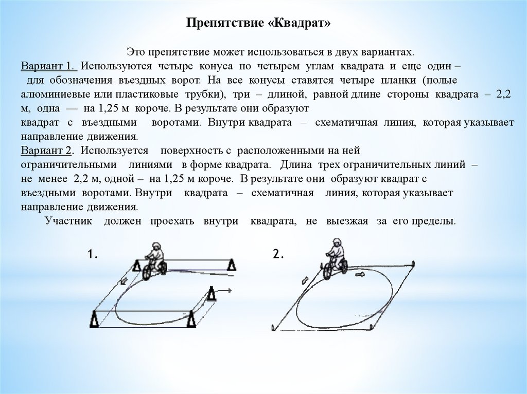 Участник должен проехать внутри квадрата, не выезжая за его пределы.