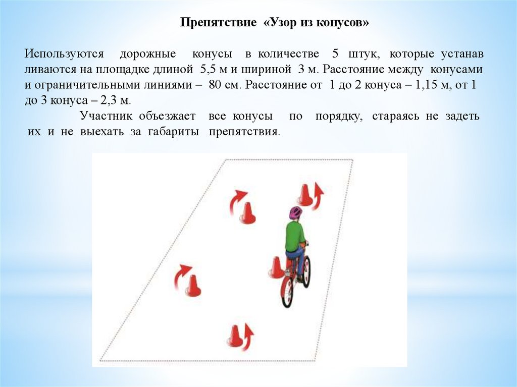 Препятствие «Узор из конусов»Используются дорожные конусы в количестве 5 штук, которые устанав