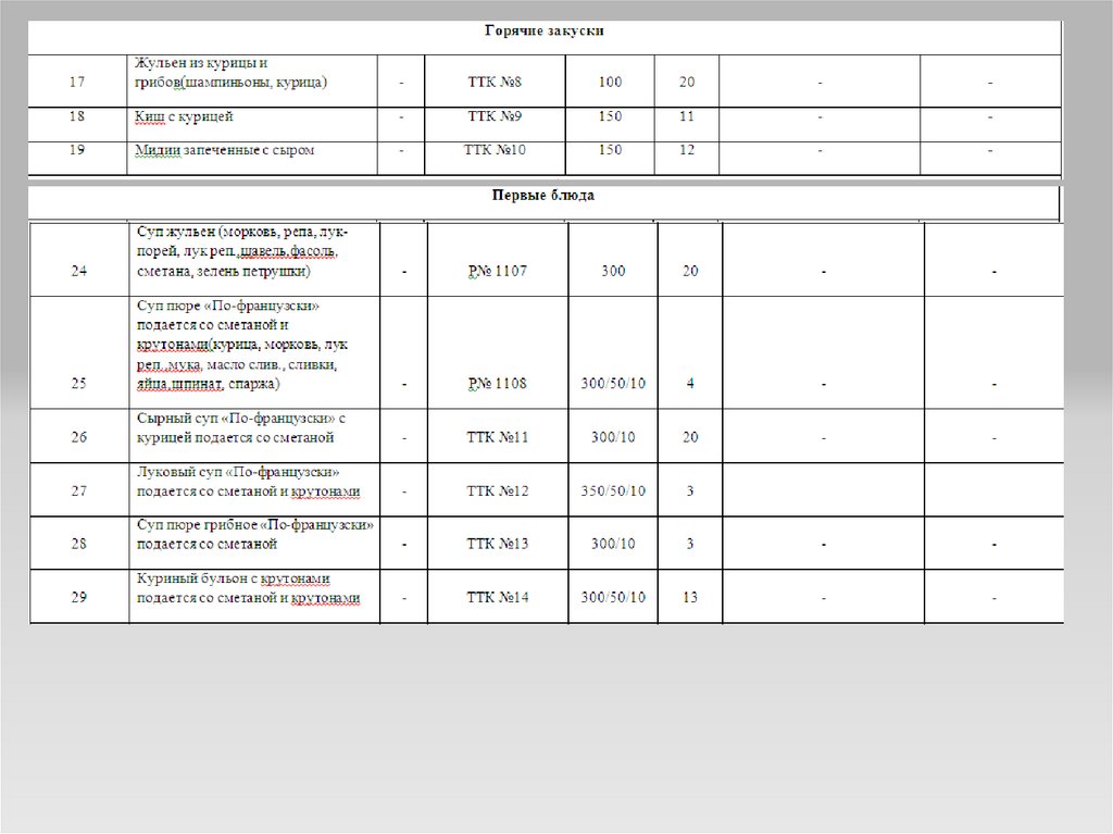 На тему: «Организация работы горячего цеха ресторана класса«люкс»