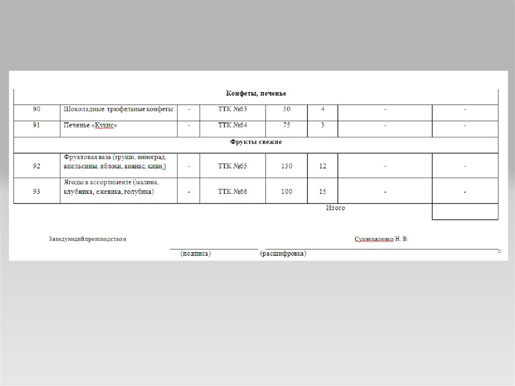 - Рассчитал основные технологические показатели деятельности горячего цеха;