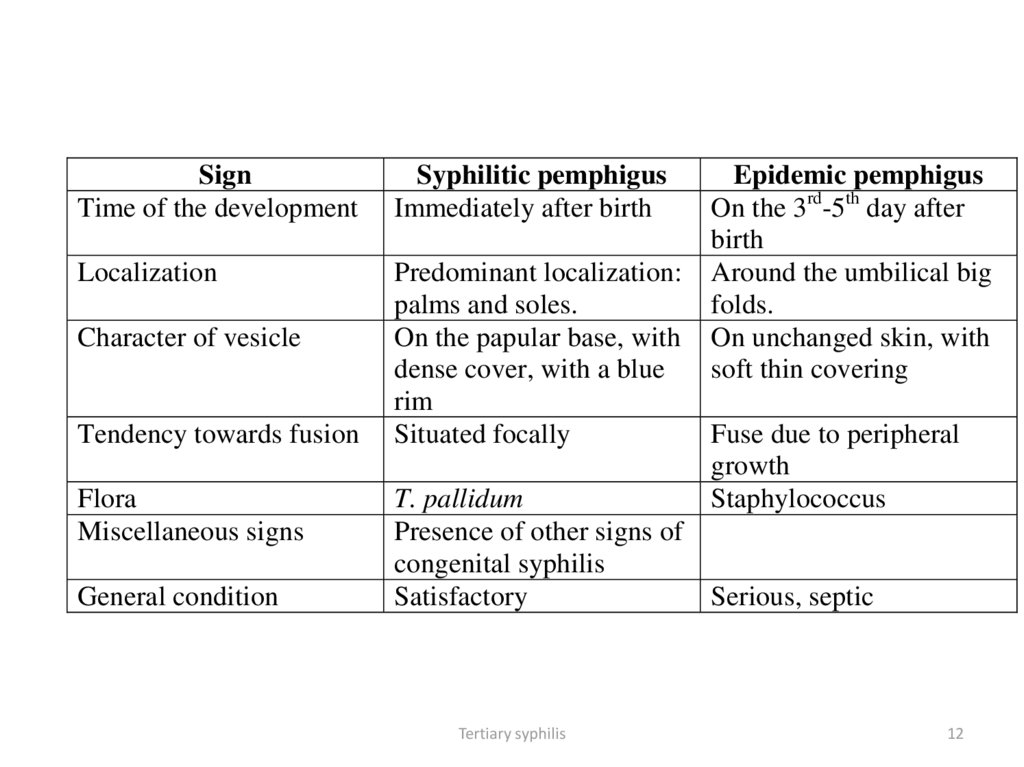 3. Syphilitic pemphigus of the newborn;