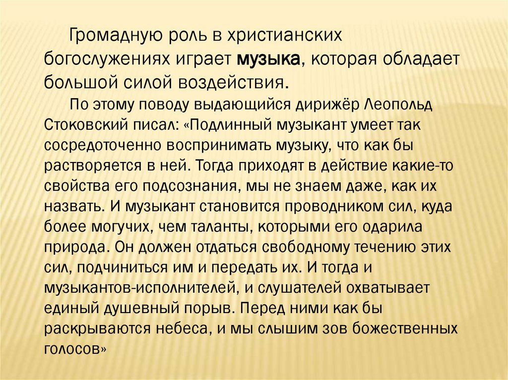 Громадную роль в христианскихбогослужениях играет музыка, которая обладает