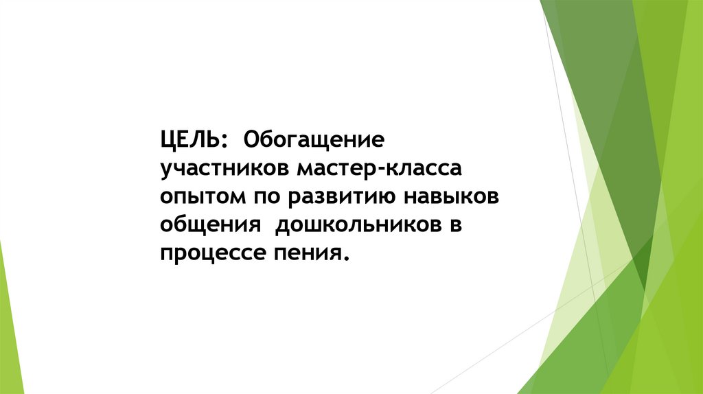 ЦЕЛЬ: Обогащениеучастников мастер-класса