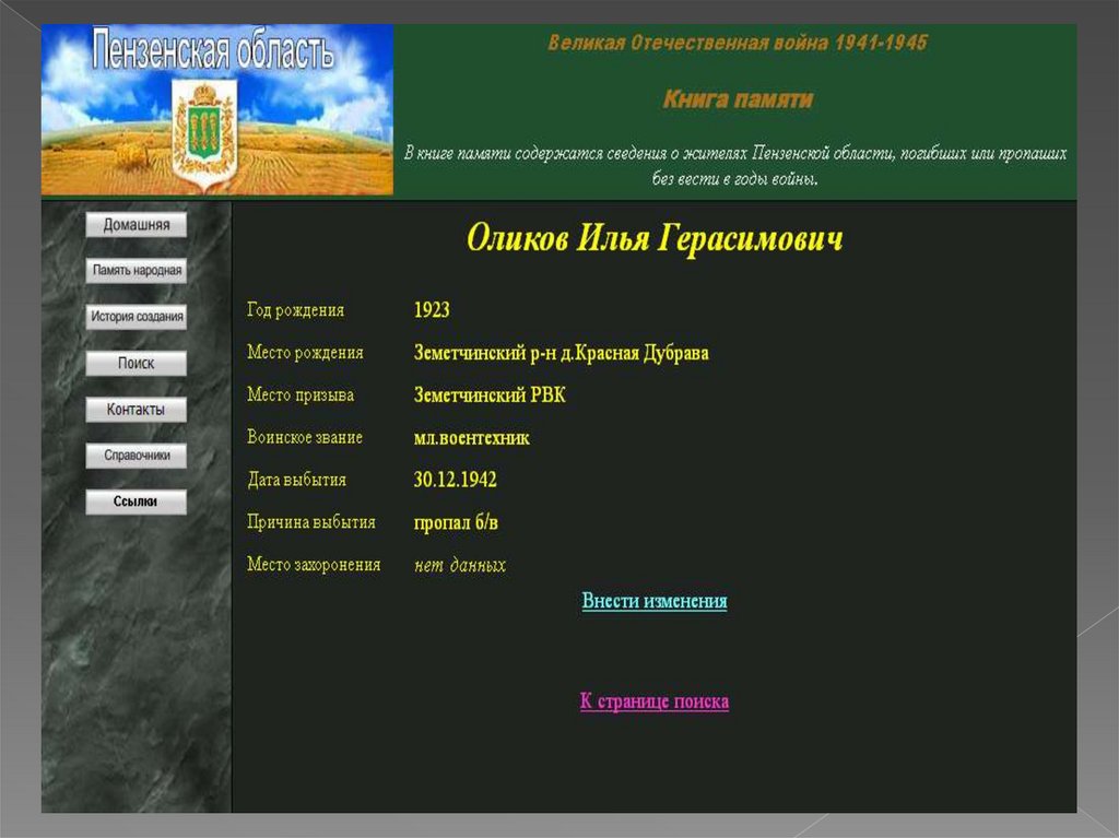 Место призыва – Земетчинский РВКВоинское звание – рядовой