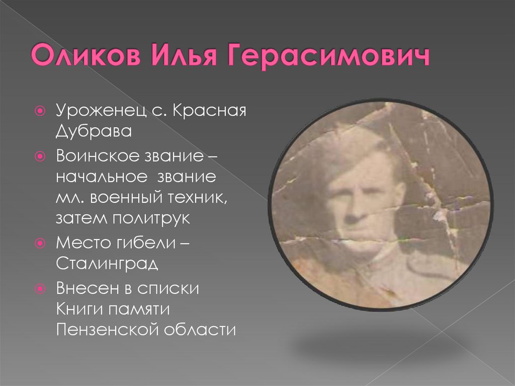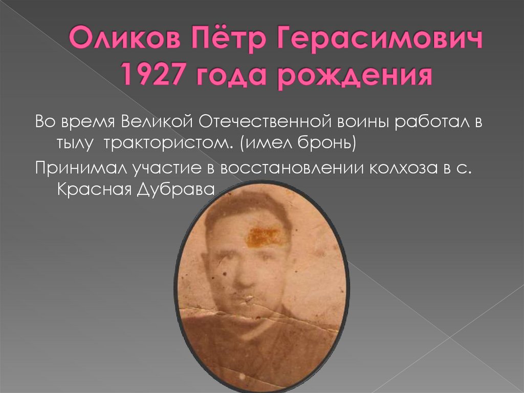 12. Оликов Пётр Герасимович 1927 года рождения