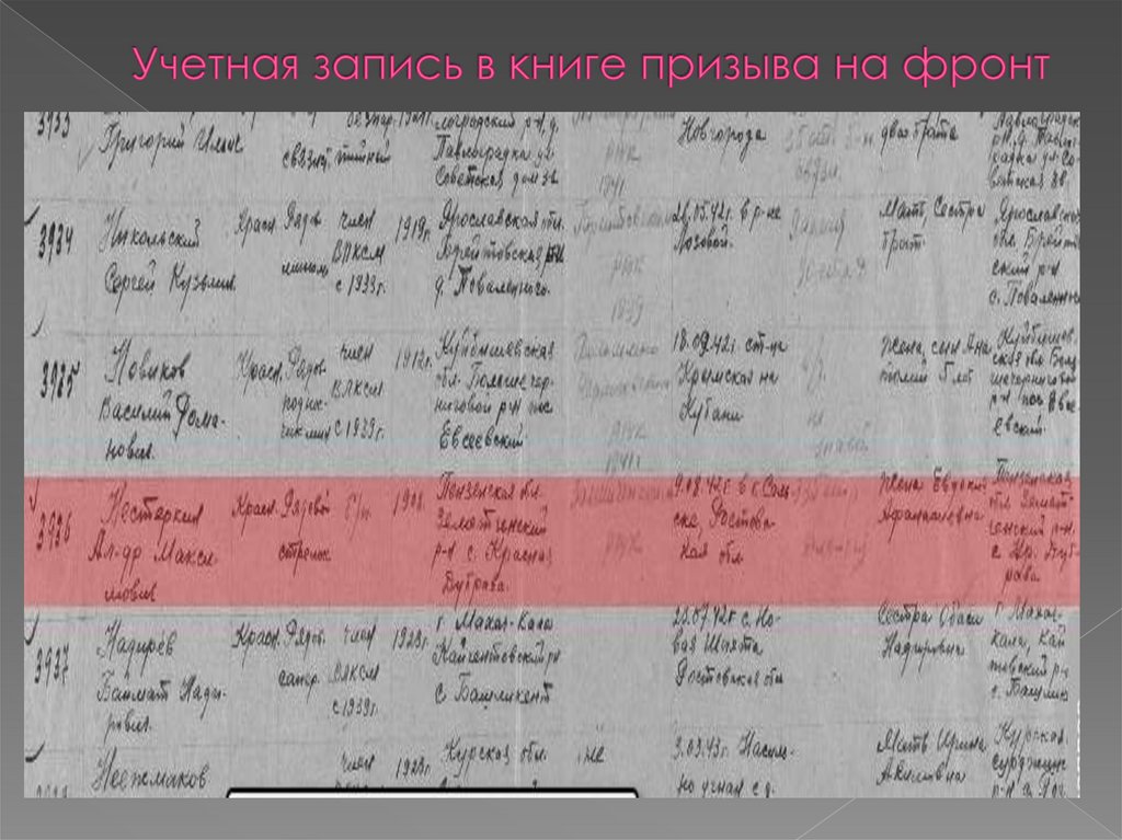 6. Учетная запись в книге призыва на фронт