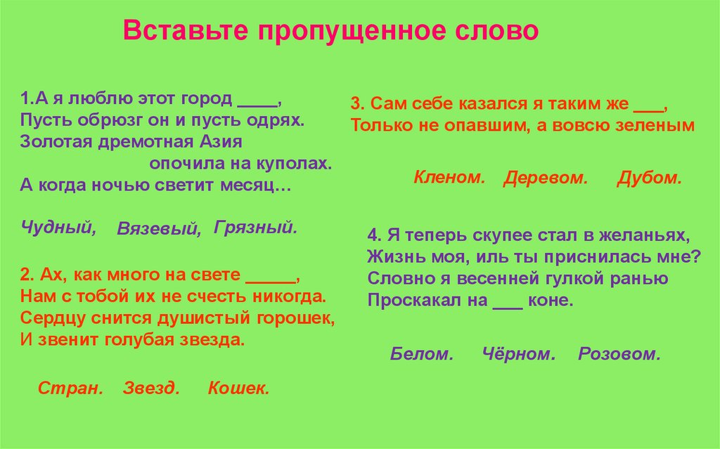 Вставьте пропущенное слово1.А я люблю этот город ____,