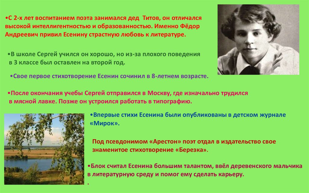 •Свое первое стихотворение Есенин сочинил в 8-летнем возрасте.