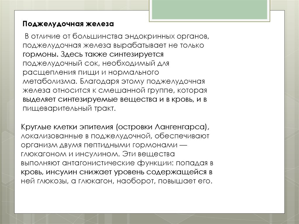 Поджелудочная железаВ отличие от большинства эндокринных органов,