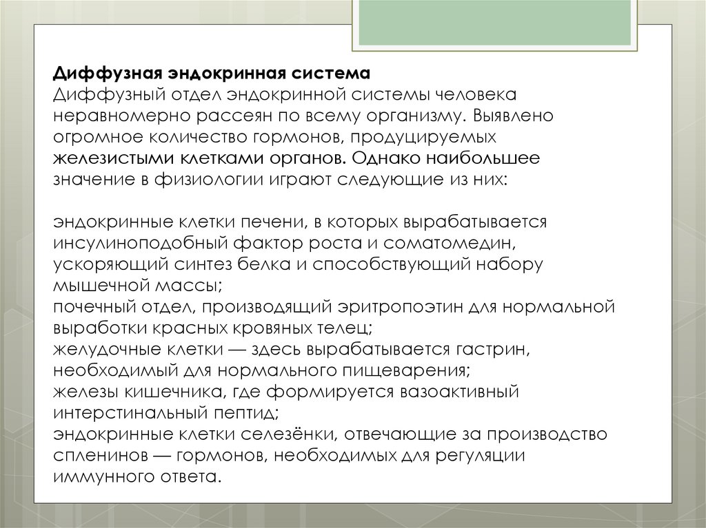 Диффузная эндокринная системаДиффузный отдел эндокринной системы человека