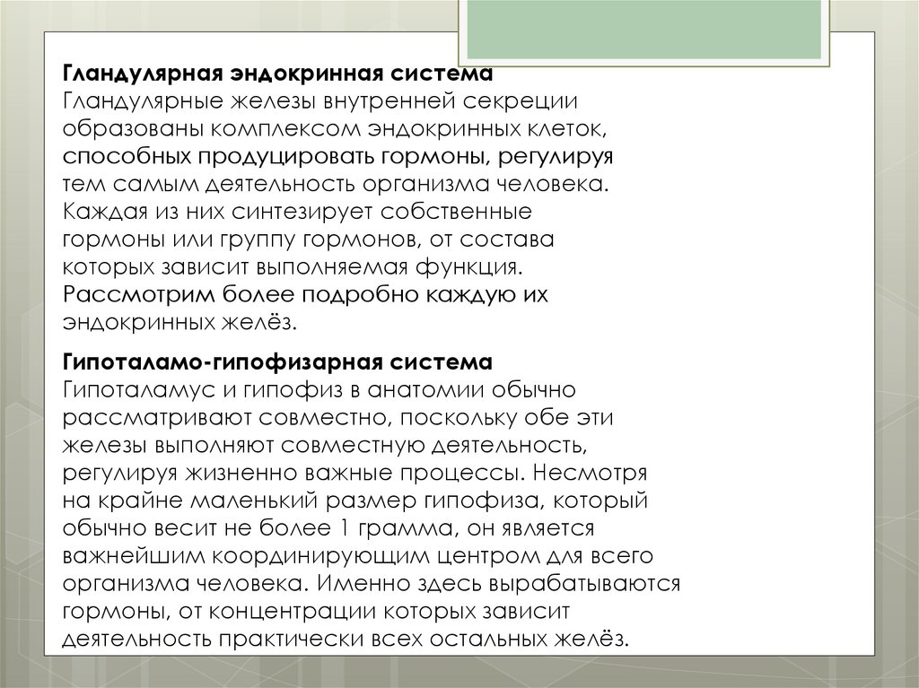 Гландулярная эндокринная системаГландулярные железы внутренней секреции