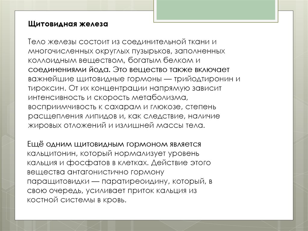 Щитовидная железаТело железы состоит из соединительной ткани и