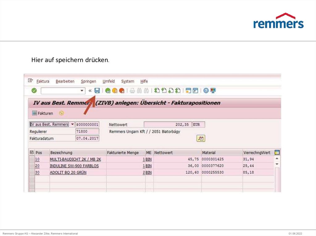 Hier auf speichern drücken.Remmers Gruppe AG – Alexander Zilke, Remmers International