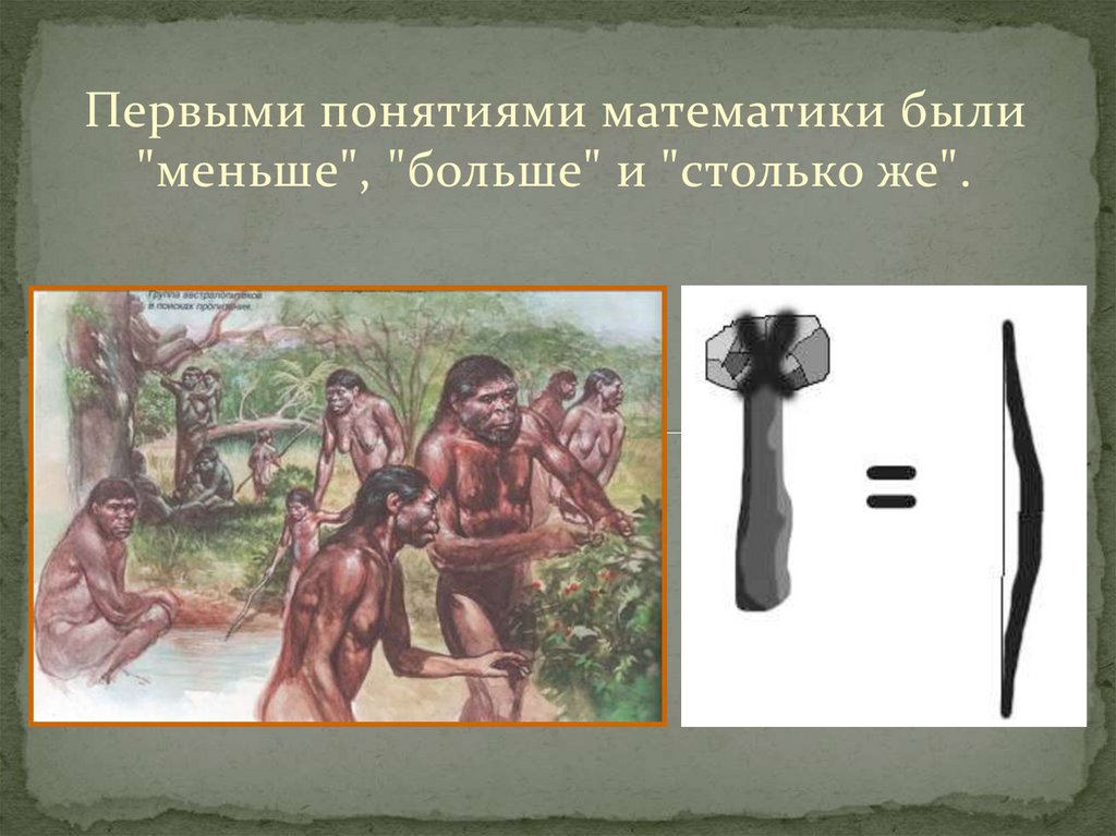 Первыми понятиями математики были"меньше", "больше" и "столько же".