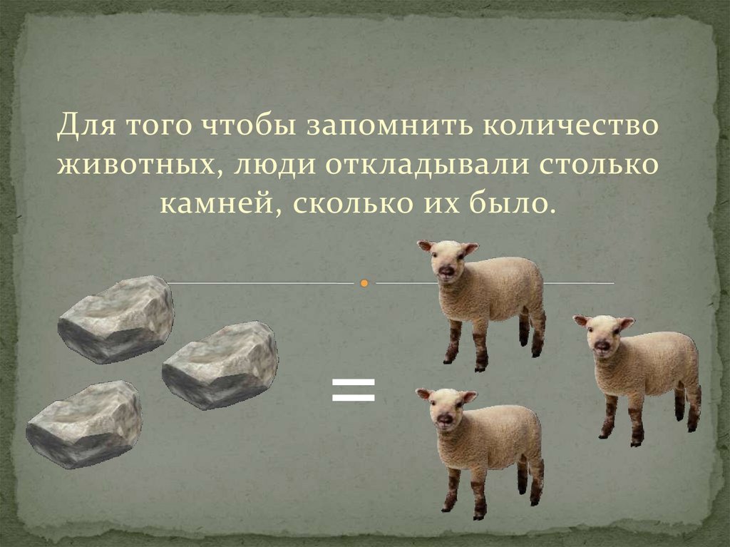 Для того чтобы запомнить количествоживотных, люди откладывали столько