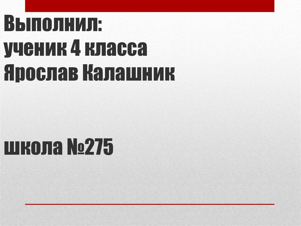 1. Выполнил: ученик 4 класса Ярослав Калашник школа №275