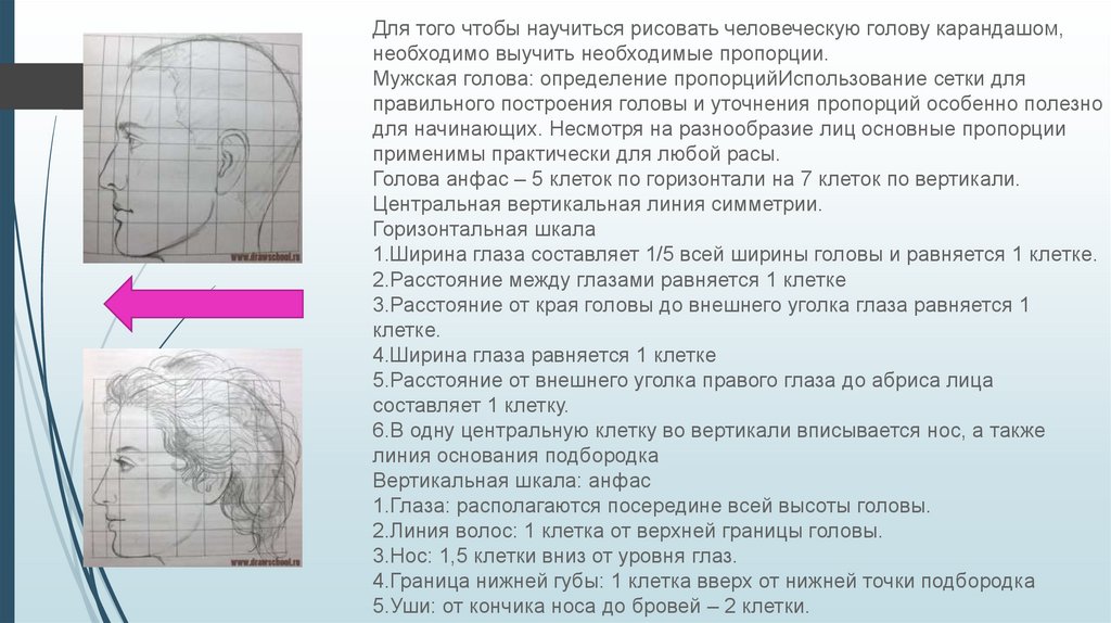 Для того чтобы научиться рисовать человеческую голову карандашом,необходимо выучить необходимые пропорции.