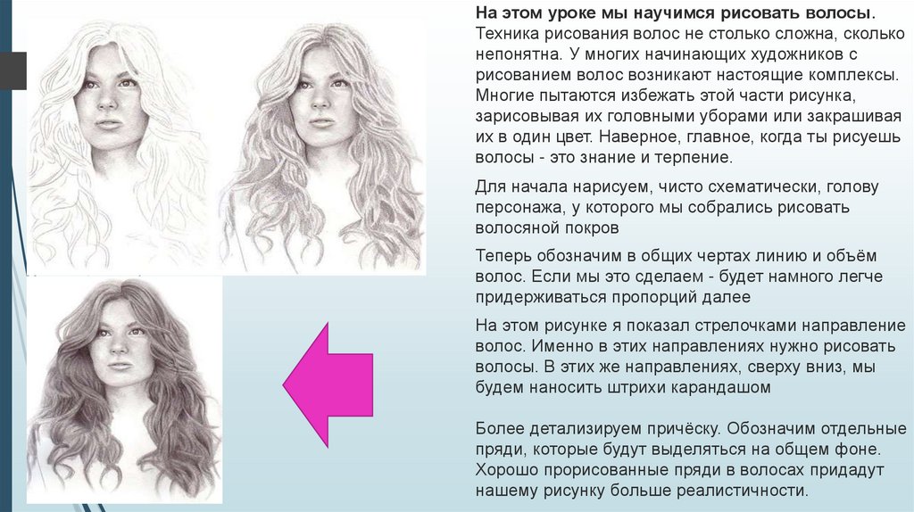 На этом уроке мы научимся рисовать волосы.Техника рисования волос не столько сложна, сколько