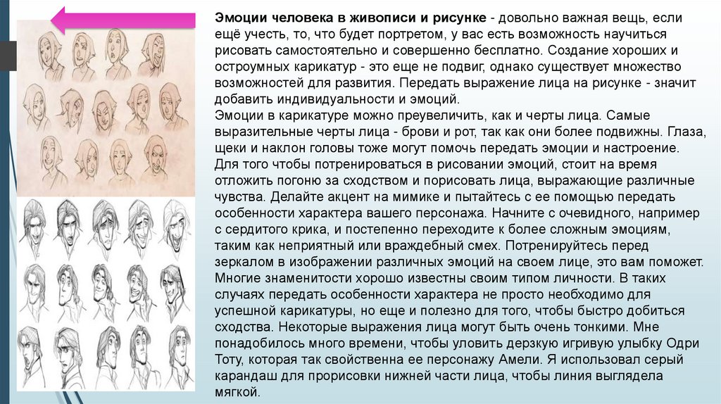 возможностей для развития. Передать выражение лица на рисунке - значит