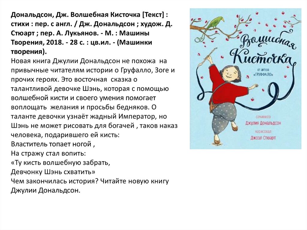 Дональдсон, Дж. Волшебная Кисточка [Текст] :стихи : пер. с англ. / Дж. Дональдсон ; худож. Д.
