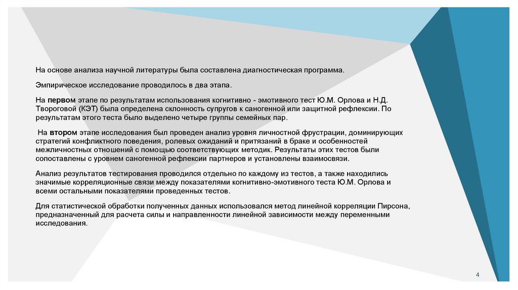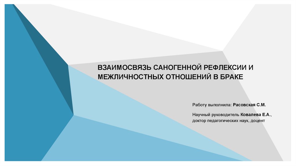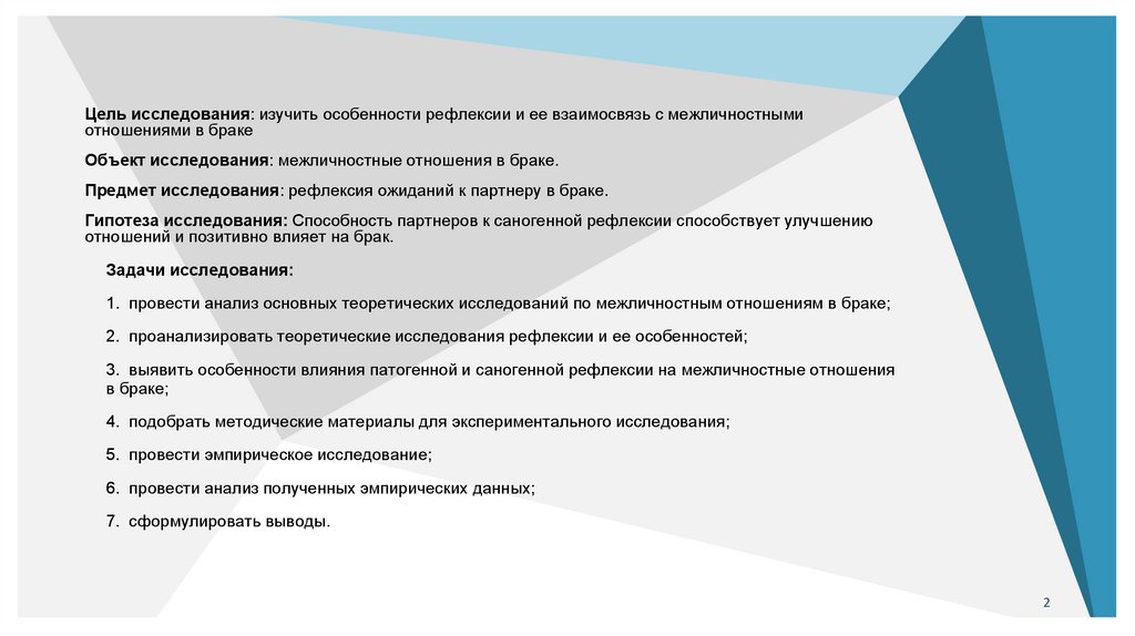 Цель исследования: изучить особенности рефлексии и ее взаимосвязь с межличностнымиотношениями в браке
