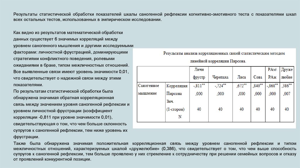 сопоставлены с уровнем саногенной рефлексии партнеров и установлены взаимосвязи.