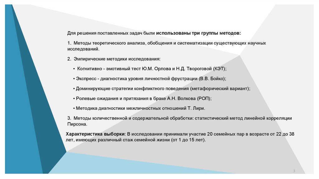 Характеристика выборки: В исследовании принимали участие 20 семейных пар в возрасте от 22 до 38