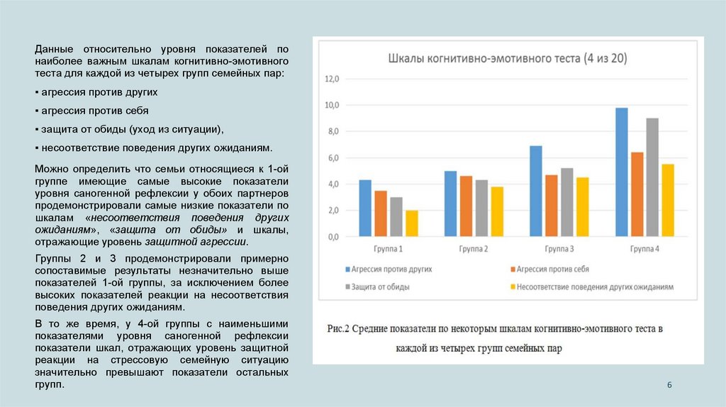Данные относительно уровня показателей понаиболее важным шкалам когнитивно-эмотивного