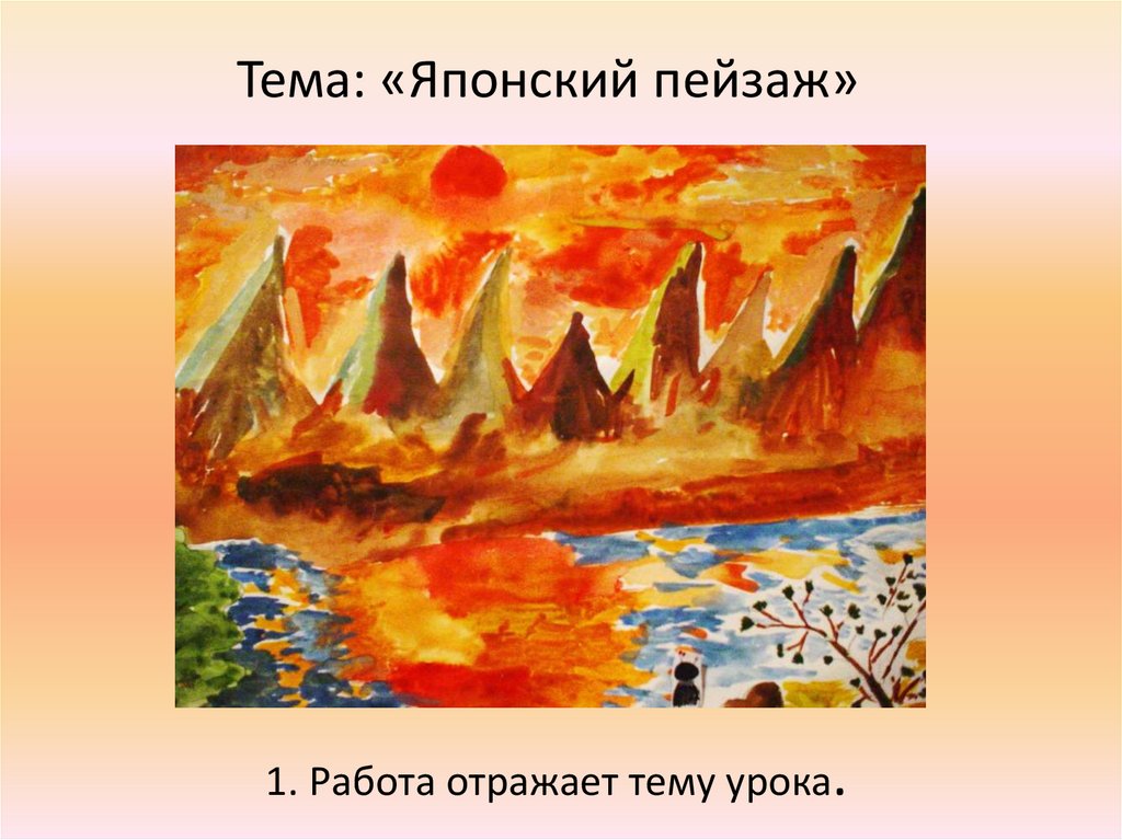 Тема: «Японский пейзаж»1. Работа отражает тему урока.