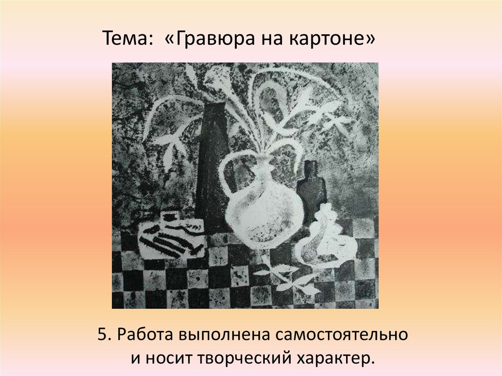 Тема: «Гравюра на картоне»5. Работа выполнена самостоятельно