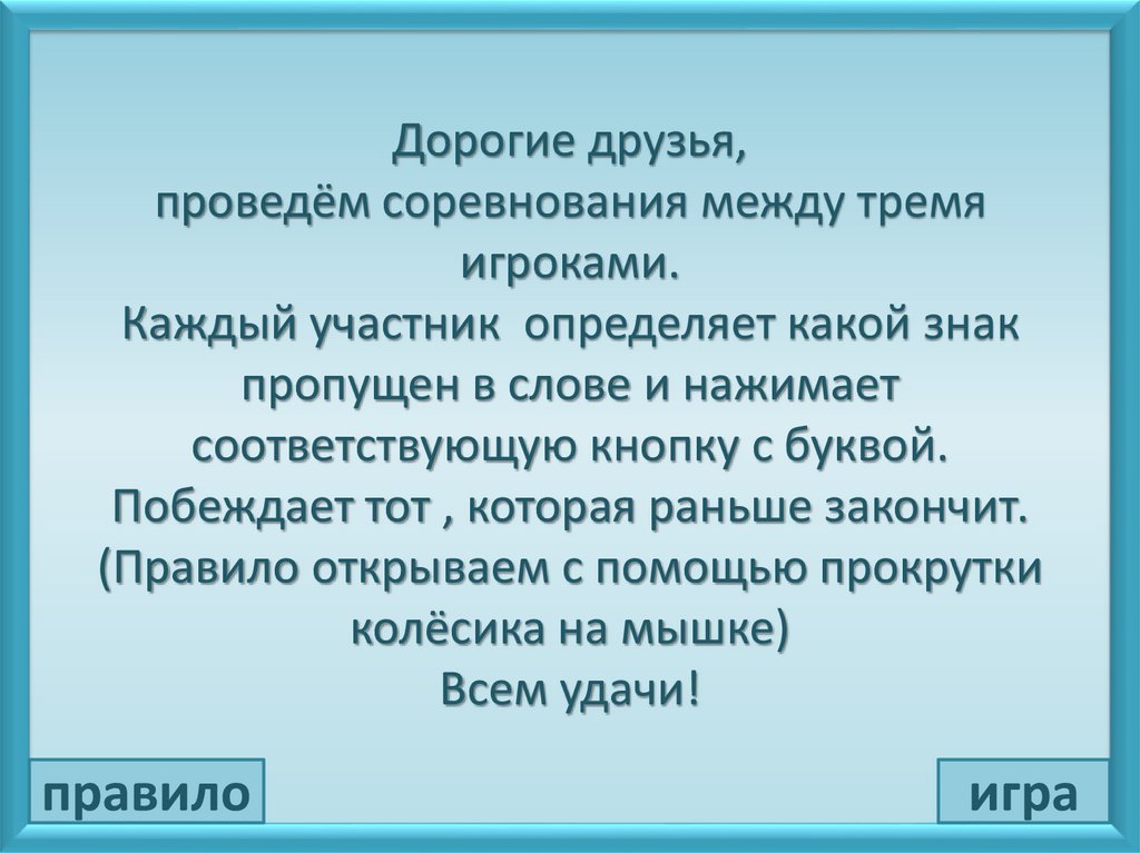 Дорогие друзья,проведём соревнования между тремя