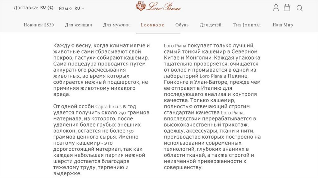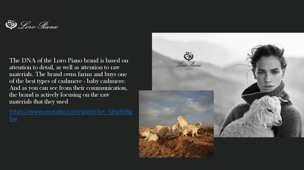 The DNA of the Loro Piano brand is based onattention to detail, as well as attention to raw