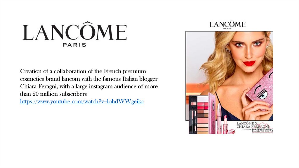 Creation of a collaboration of the French premiumcosmetics brand lancom with the famous Italian blogger