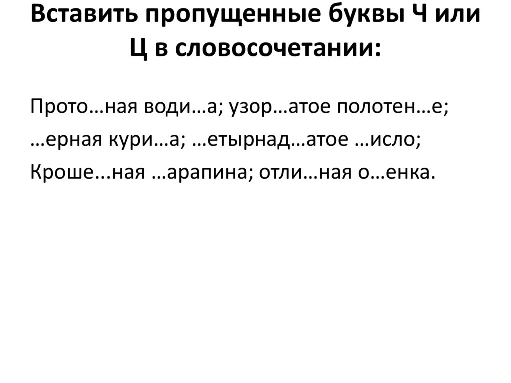5. Вставить пропущенные буквы Ч или Ц в словосочетании: