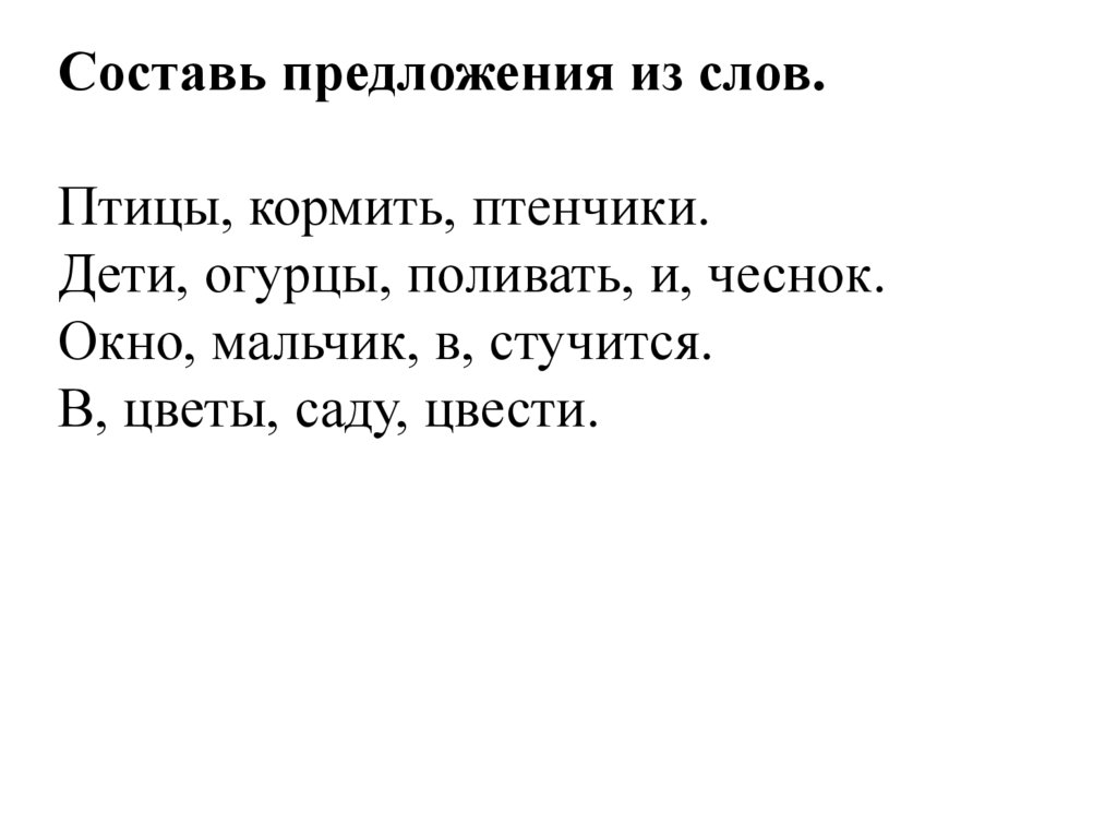 Составь предложения из слов.Птицы, кормить, птенчики.