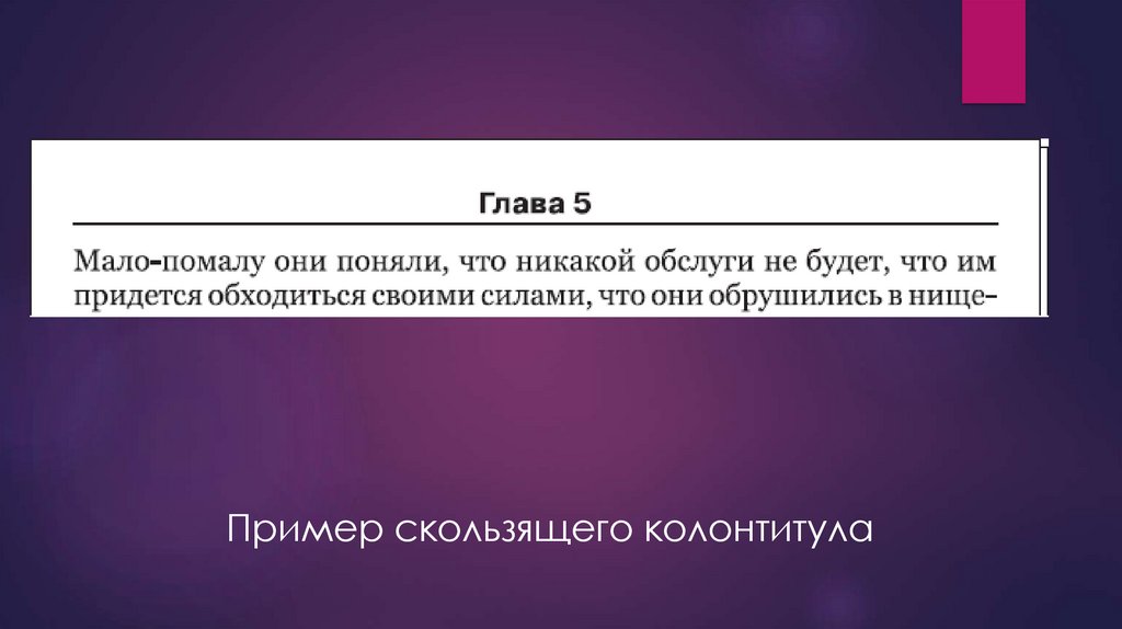 5. ПЕРЕМЕННЫЙ КОЛОНТИТУЛ — колонтитул, текст которого меняется либо с каждой страницей, как, напр., в словарях, либо с началом