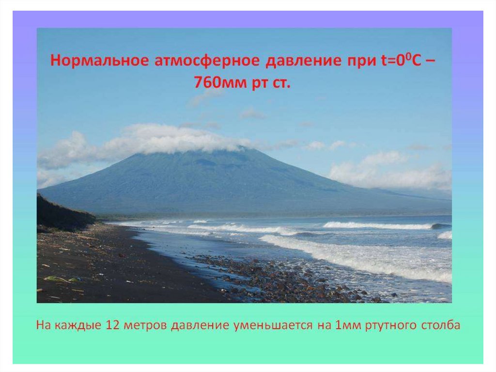 нормальное, то есть р1=100 000 Па.14. На каждых 12 метрах вверх происходит уменьшение давления атмосферы на 133,3 Па!!!