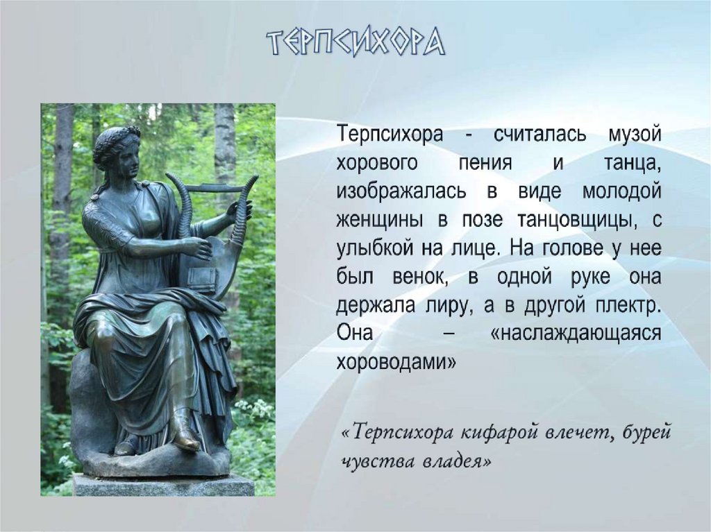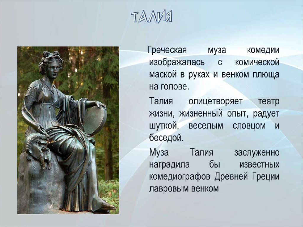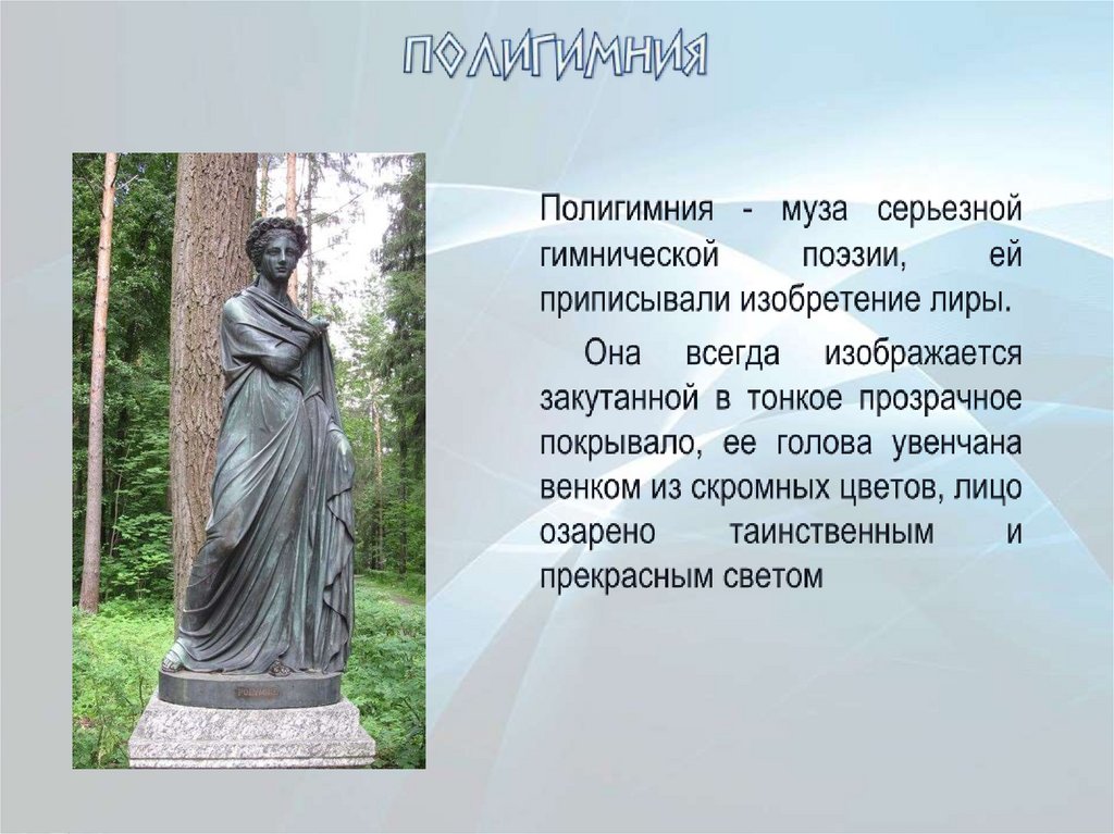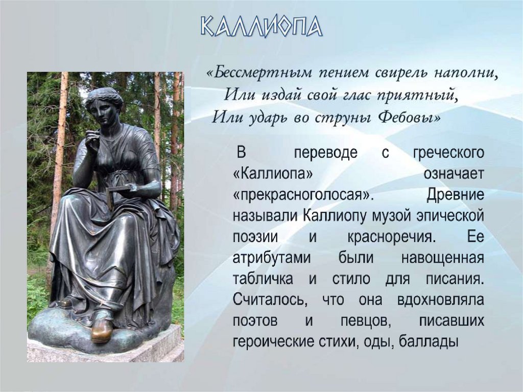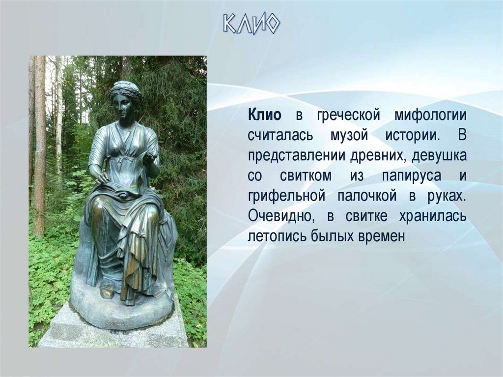 Клио в греческой мифологиисчиталась музой истории. В