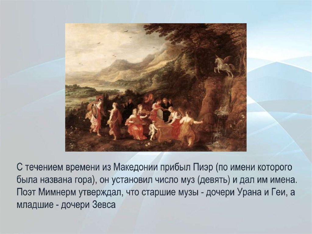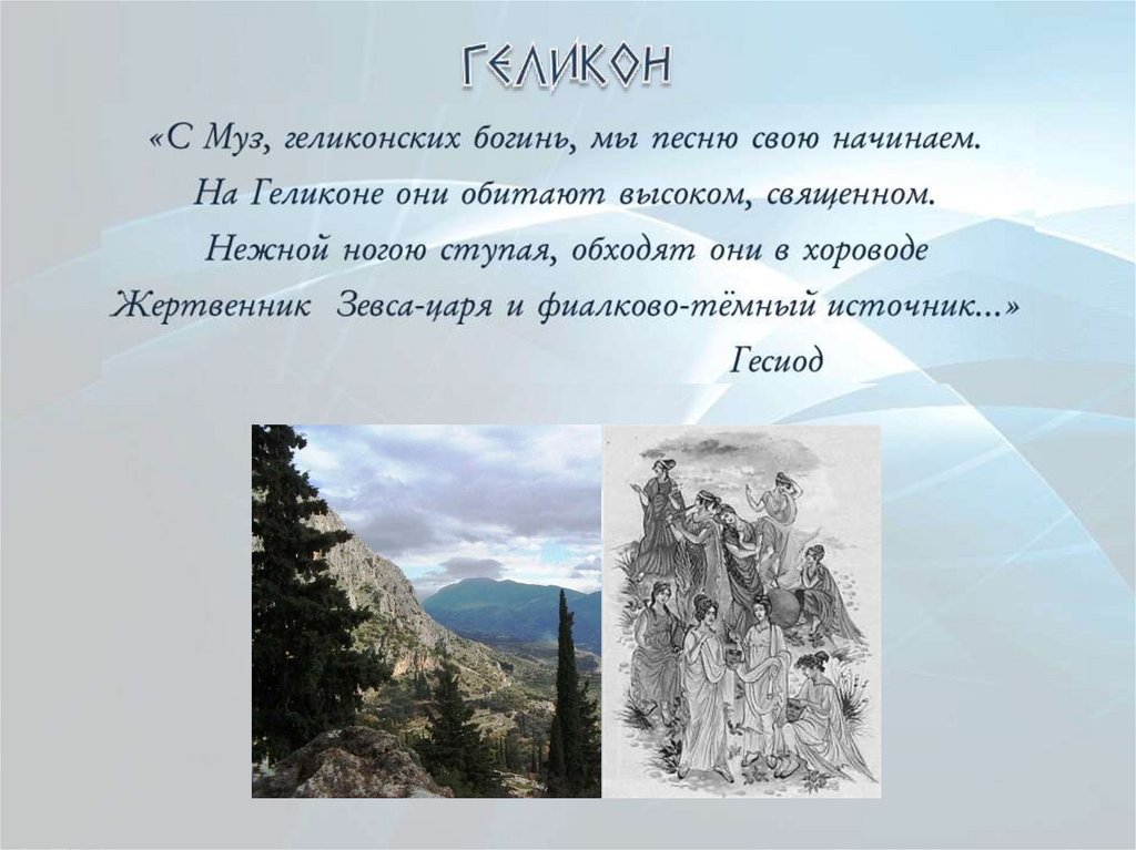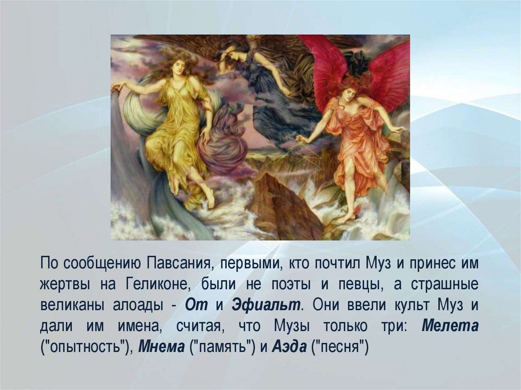 По сообщению Павсания, первыми, кто почтил Муз и принес имжертвы на Геликоне, были не поэты и певцы, а страшные