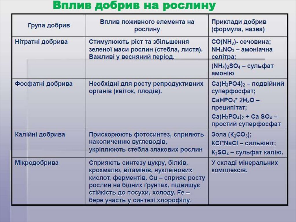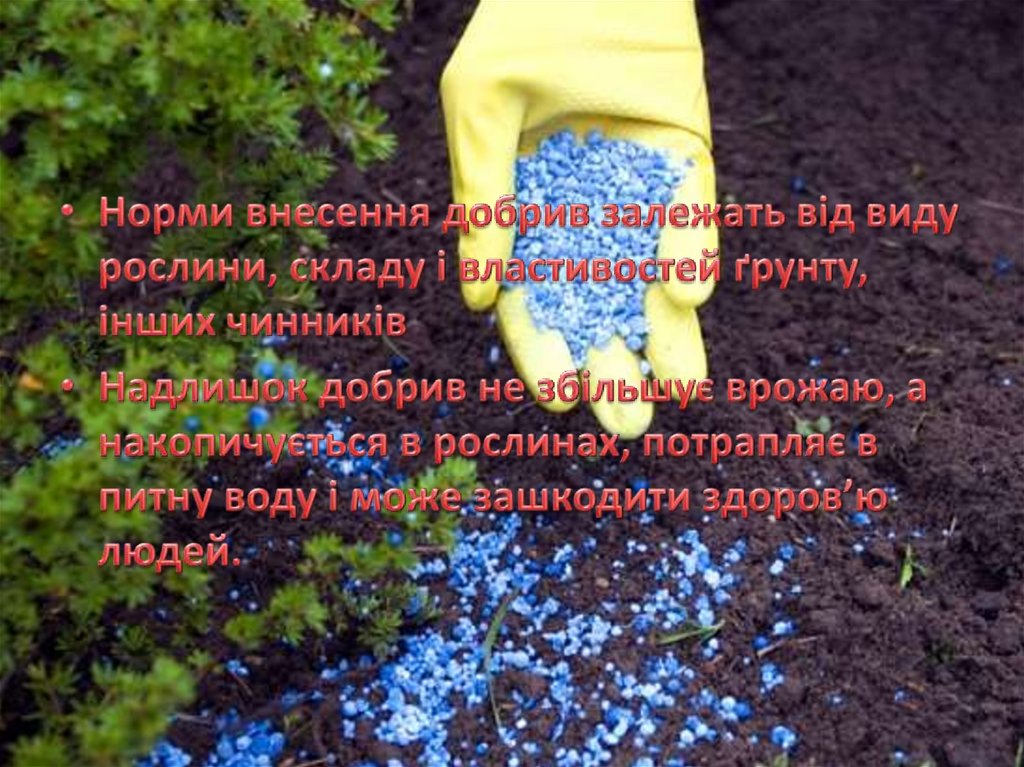 • Добрива — органічні й неорганічніречовини, які застосовують для поліпшення