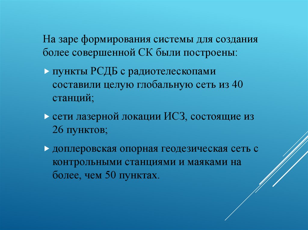 На заре формирования системы для созданияболее совершенной СК были построены: