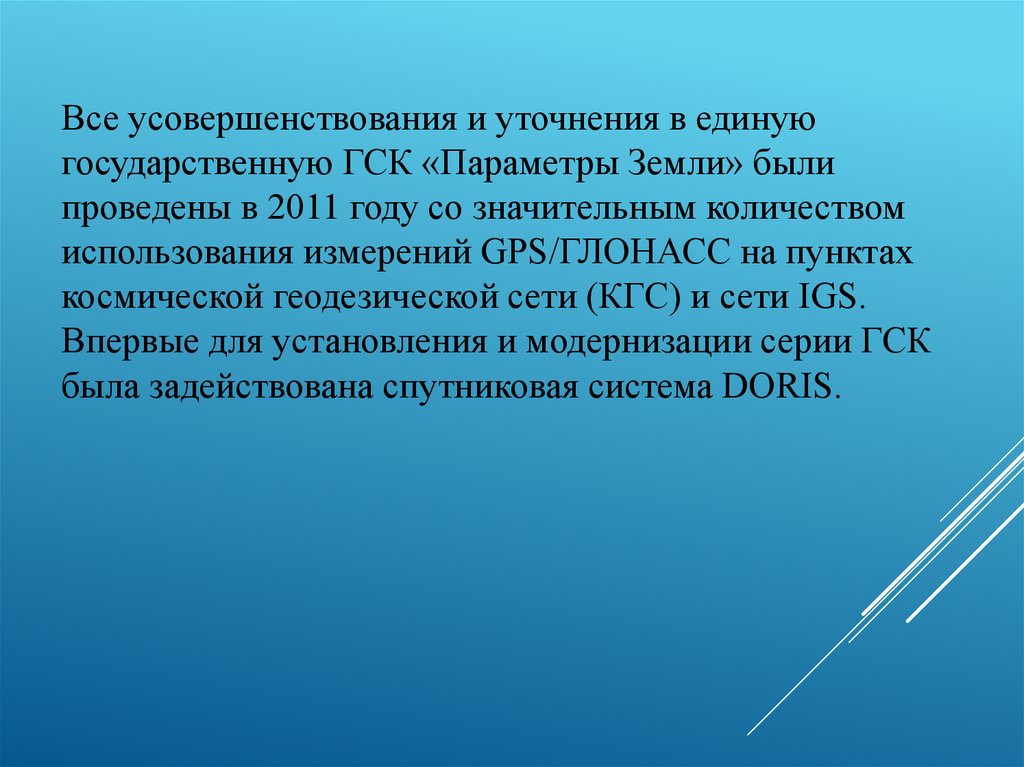 Все усовершенствования и уточнения в единуюгосударственную ГСК «Параметры Земли» были