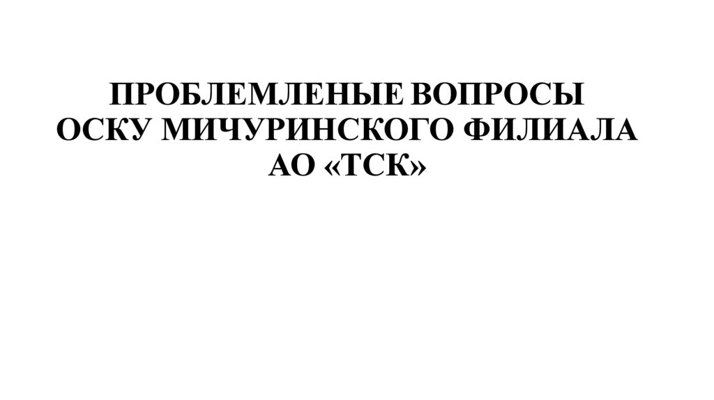 1. ПРОБЛЕМЛЕНЫЕ ВОПРОСЫ ОСКУ МИЧУРИНСКОГО ФИЛИАЛА АО «ТСК»