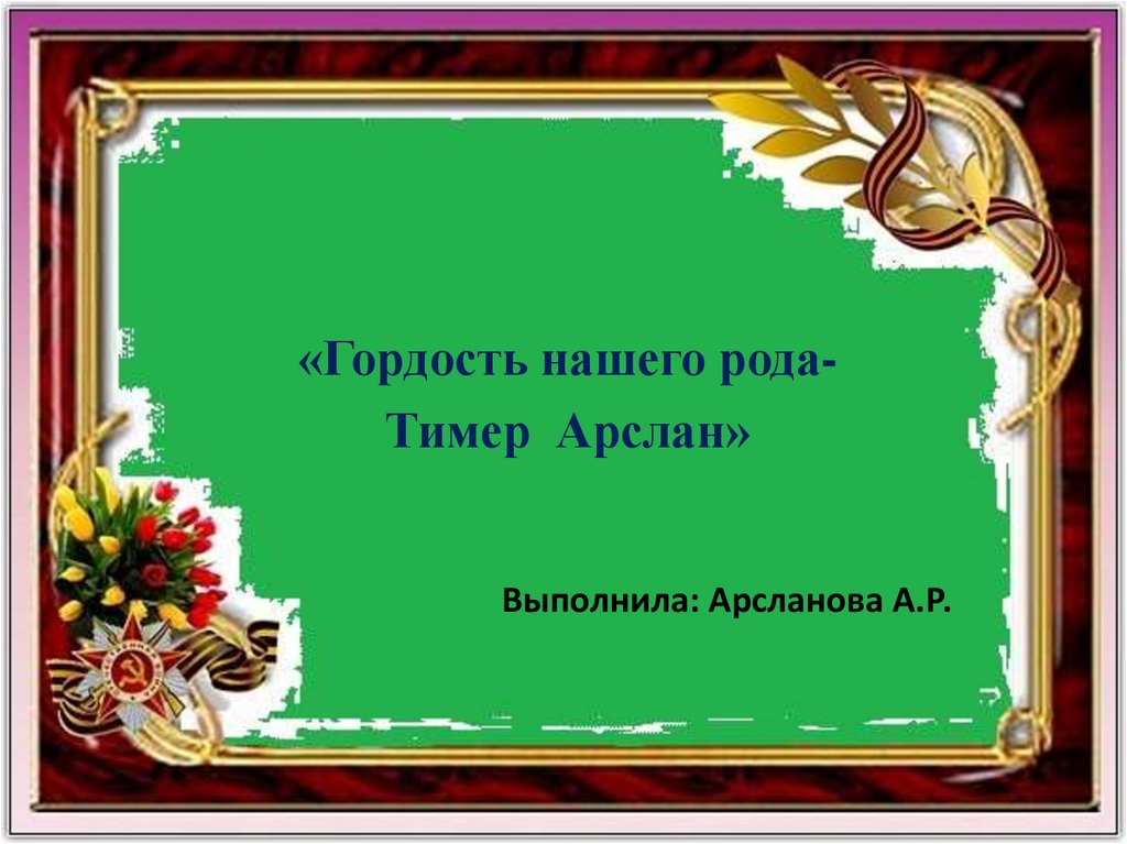 «Гордость нашего родаТимер Арслан»Выполнила: Арсланова А.Р.
