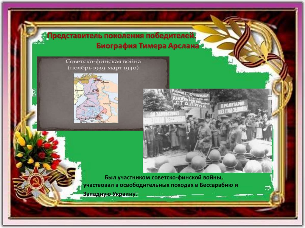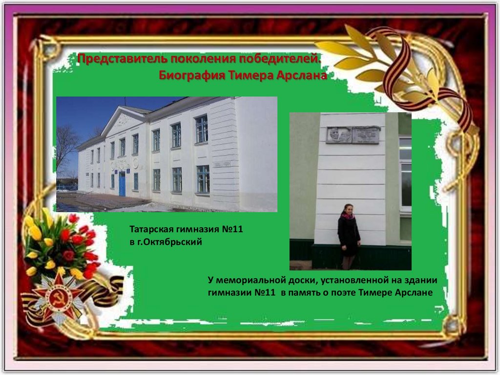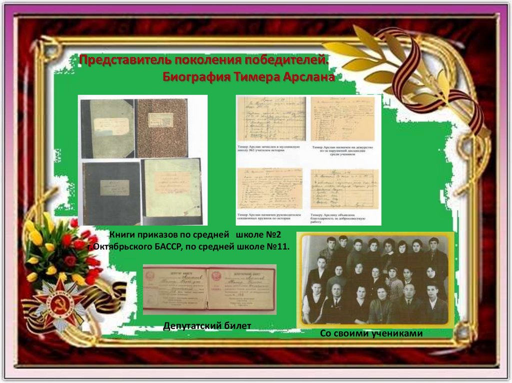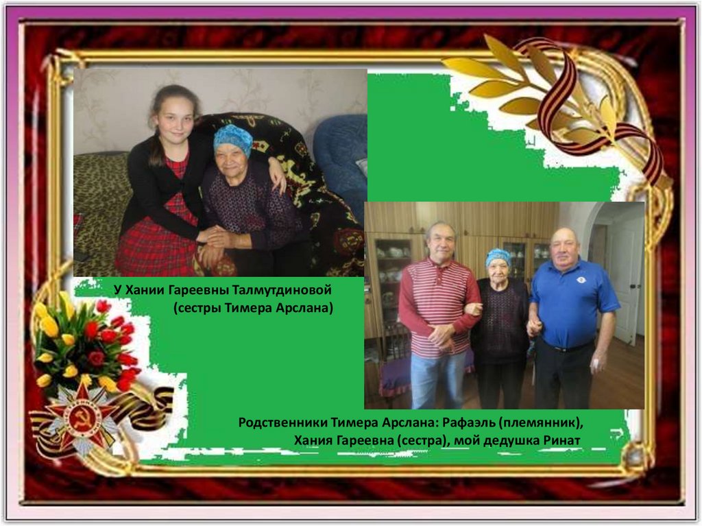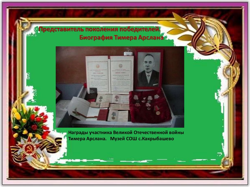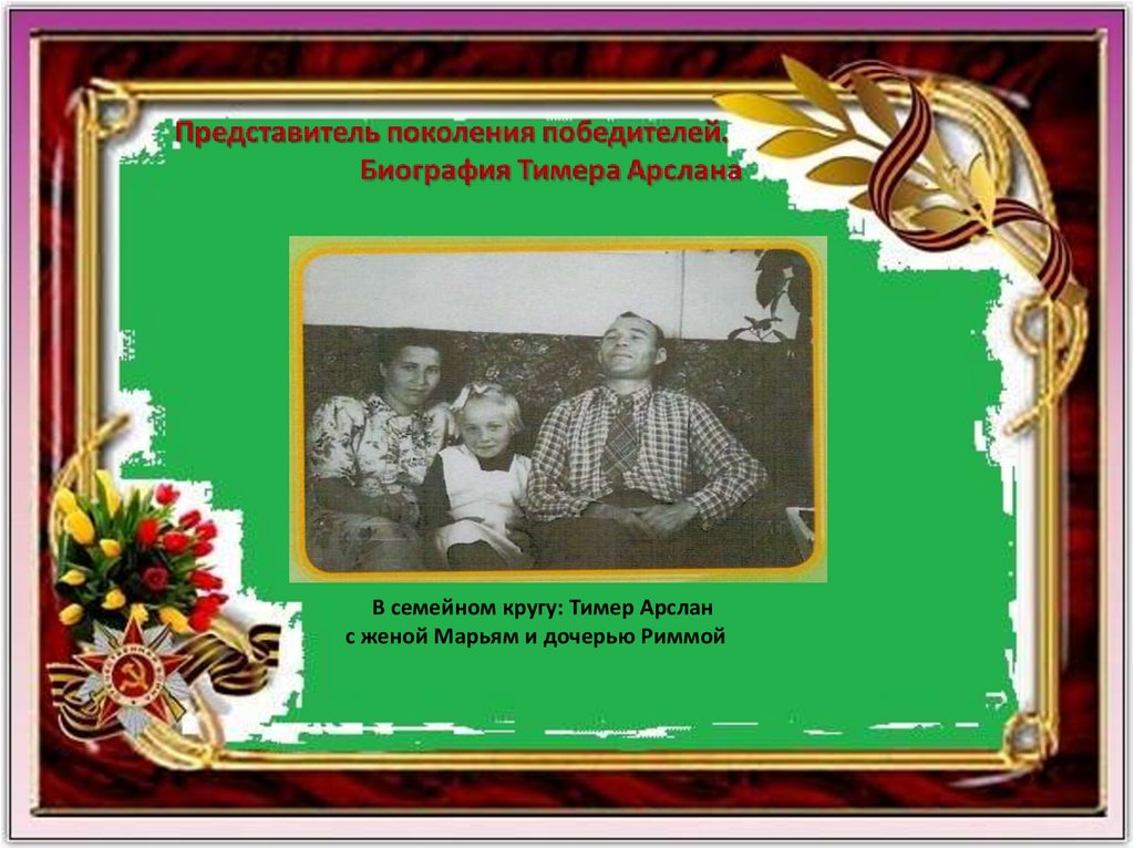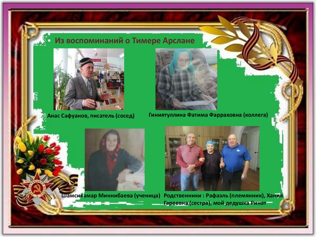 Тимер Арслан – достойный сын Отечества,внесший свой вклад в Великую Победу. Его