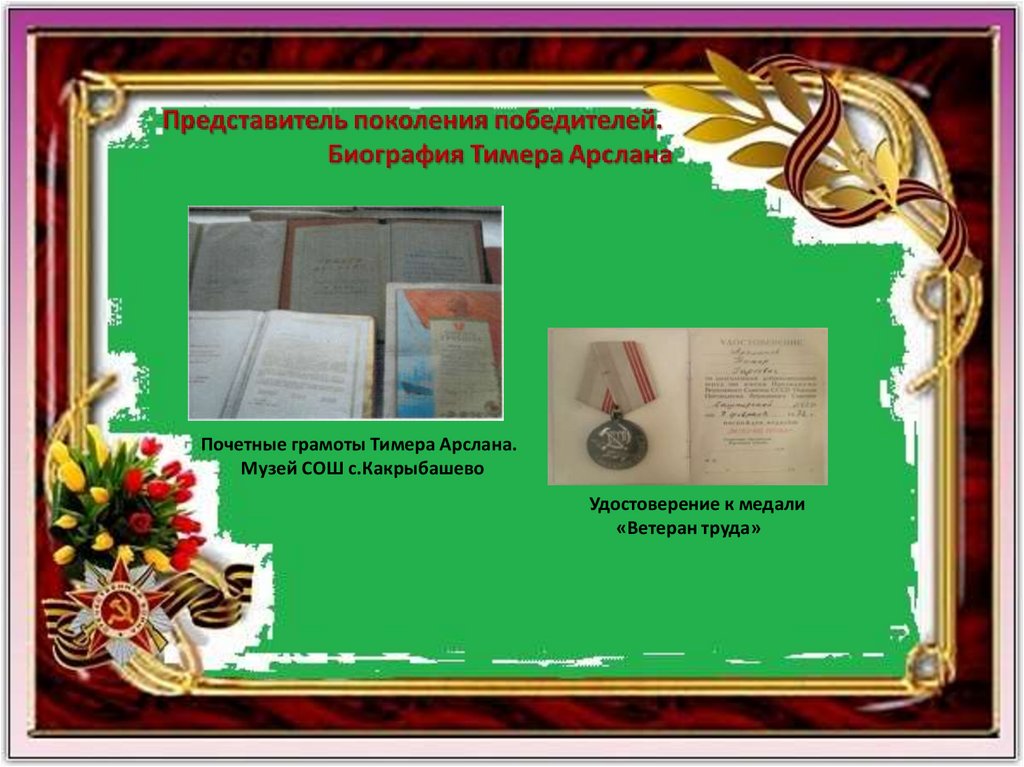 Почетные грамоты Тимера Арслана.Музей СОШ с.Какрыбашево