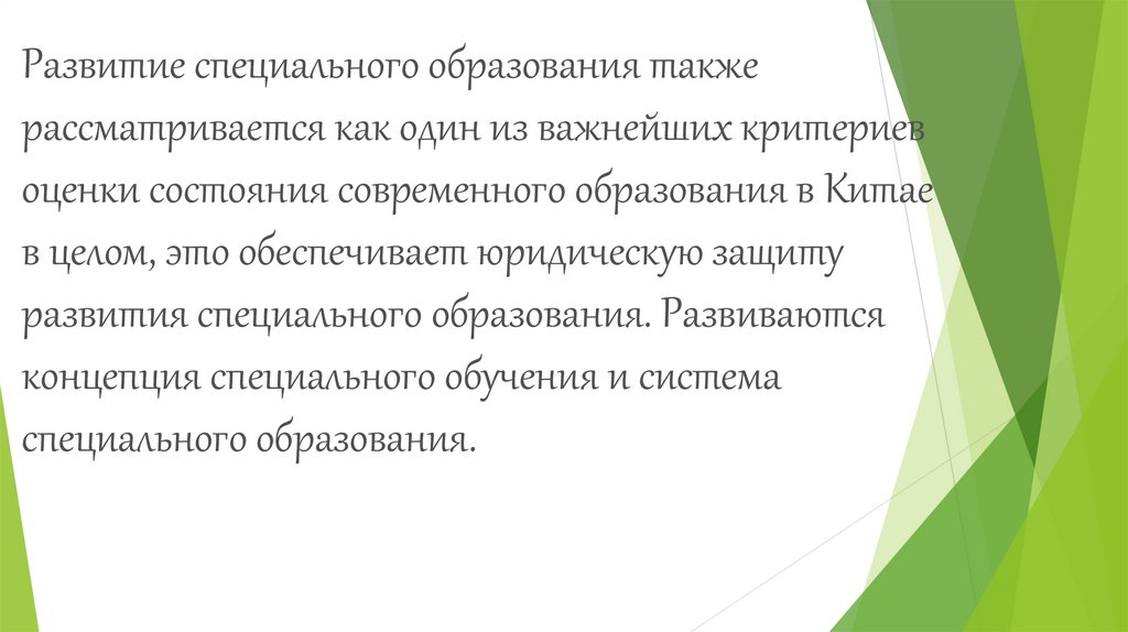 Развитие специального образования такжерассматривается как один из важнейших критериев