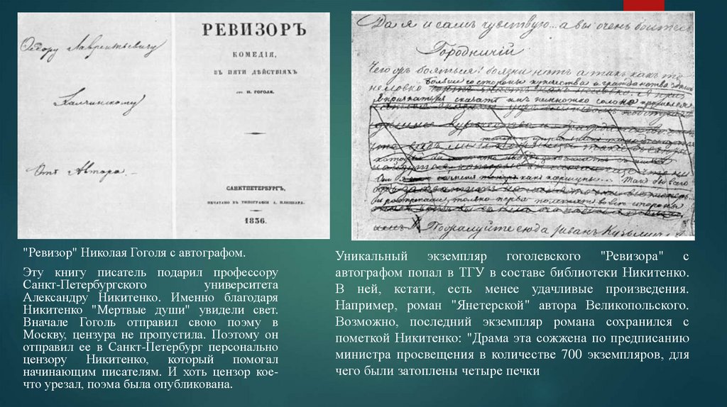 "Ревизор" Николая Гоголя с автографом.Эту книгу писатель подарил профессору