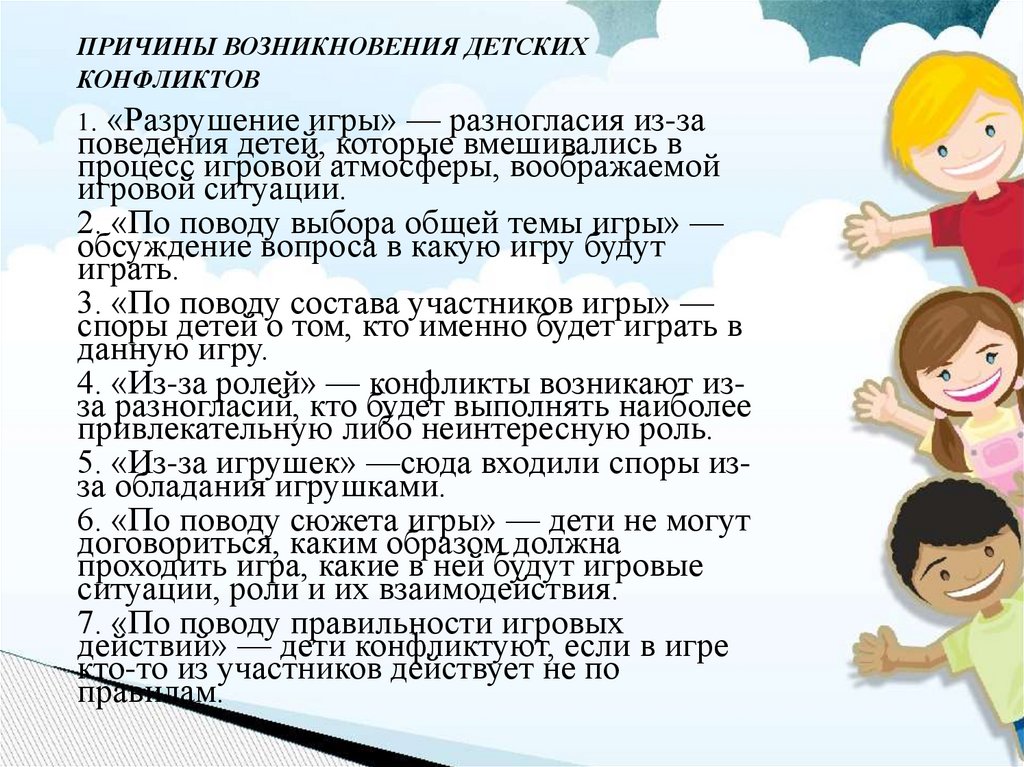 ПРИЧИНЫ ВОЗНИКНОВЕНИЯ ДЕТСКИХКОНФЛИКТОВ